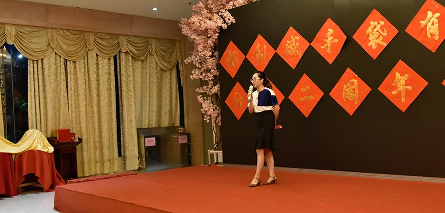 首先,公司外貿A組經理劉敏擔任這次廠慶的主持人并講話。主持人先來一句問候活躍現場的氣氛,而后用簡短的開場發言表達了對本次廠慶的美好祝愿,同時展望公司美好的未來。接著請出公司董事長徐董致辭。